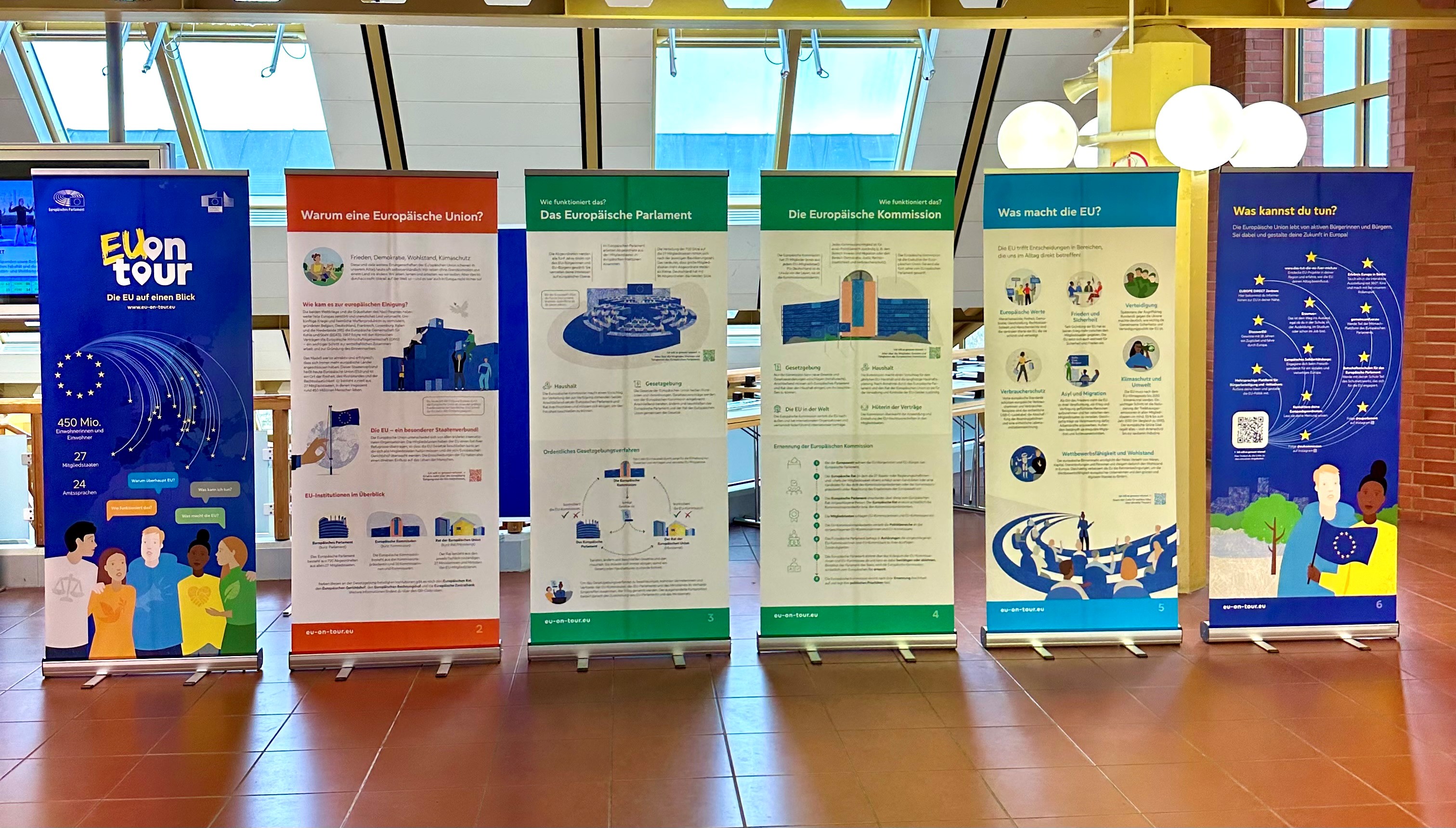 Die Wanderausstellung "EU on tour - Die EU auf einen Blick" macht in dieser Woche Station im Mensa-Foyer Tarforst. Nächste Woche folgt die Mensa Schneidershof. Die Ausstellung will bei jungen Menschen das Interesse an der Europäischen Union wecken. Es gibt Informationen über die Arbeit und die Bedeutung der EU. Außerdem erhalten Studierende viele Tipps zur eigenen Beteiligung an zahlreichen EU-Projekten.