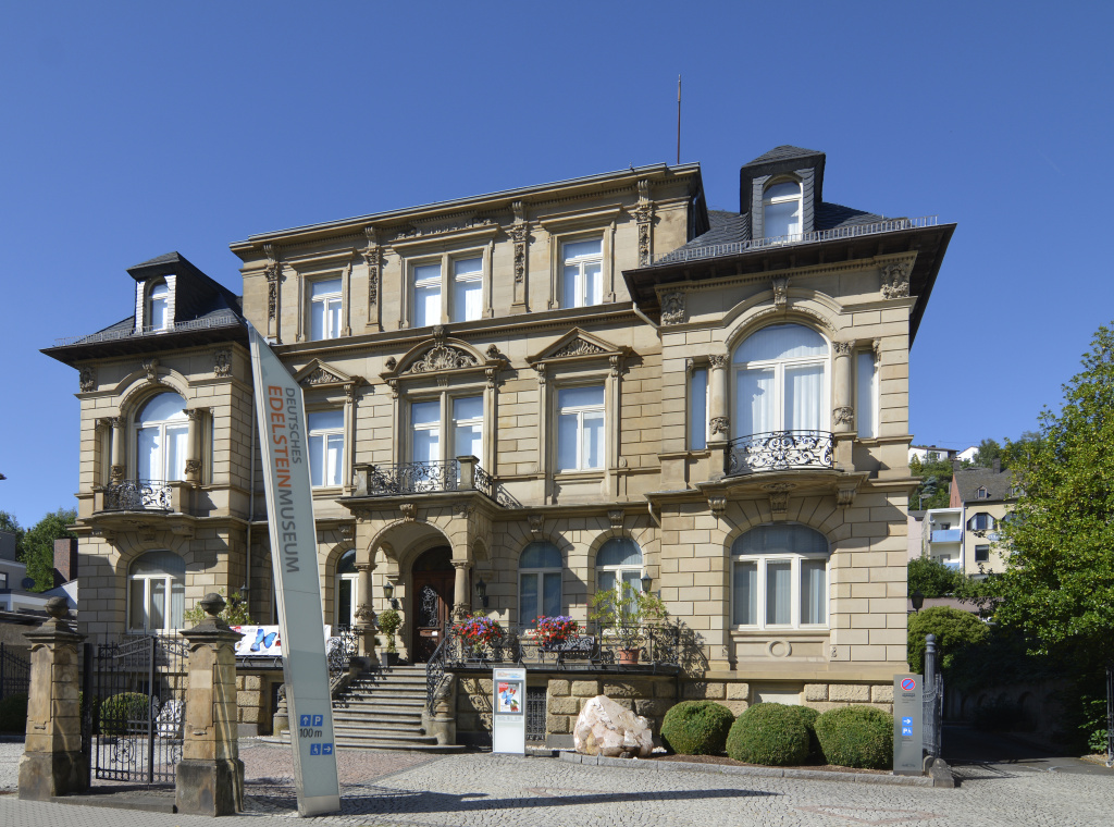 Das Deutsche Edelsteinmuseum in Idar-Oberstein zeigt auf drei Etagen einer stilvoll restaurierten Gründerzeitvilla alle Edelsteinarten der Welt mit mehr als 10.000 Exponaten. Neben funkelnden Edelsteinen und Diamanten ziehen auch kunstvoll gearbeitete Gravuren und Skulpturen sowie ausgesuchte Mineralien den Betrachter in ihren Bann.
